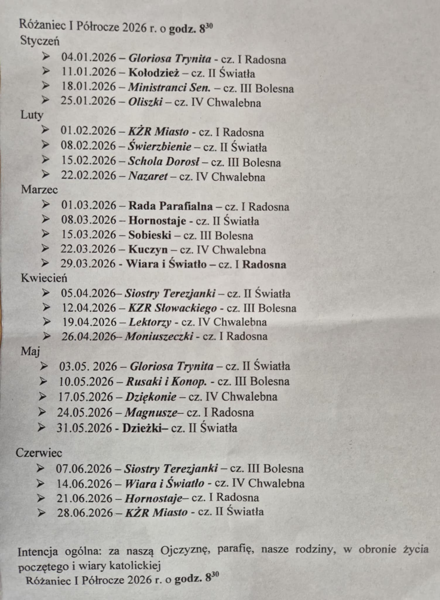 Różaniec - I półrocze 2026